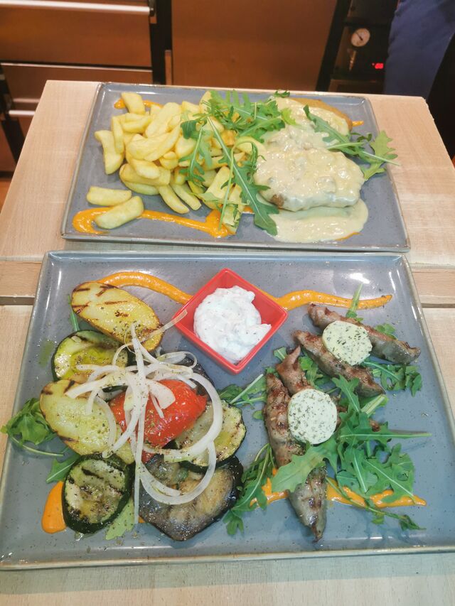 Schweineschnitzel mit ´´Metaxasauce oder Champignons Sauce´´,